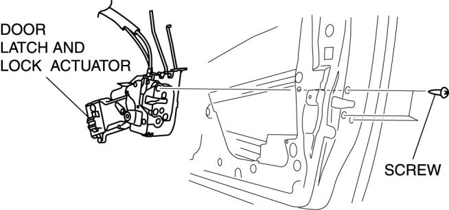 5. Remove the screws, then remove the door latch and lock actuator.