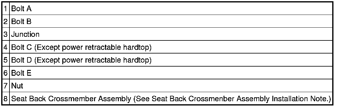 - If the seat back crossmember component is removed with the power retractable hardtop fully opened, it may contact the middle roof and damage the roof. Half open the power retractable hardtop before removing the seat back crossmember component.