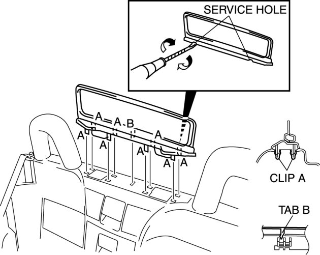 2. Twist the flathead screwdriver as indicated by the arrow to remove the clips A and tab B.