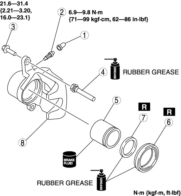 CALIPER (FRONT) DISASSEMBLY/ASSEMBLY