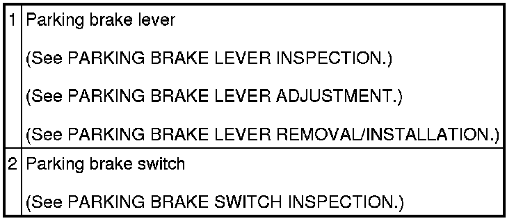 PARKING BRAKE SYSTEM LOCATION INDEX