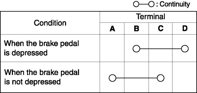 - If the brake switch is removed from the brake pedal (MT) or the interlock unit (AT), its proper functioning cannot be guaranteed when reinstalled. Therefore, inspect the brake switch with it still installed, or replace the brake switch if it is removed.