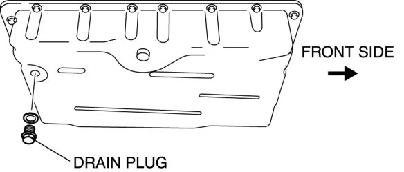 1. Remove the drain plug and the drain plug gasket from the oil pan.
