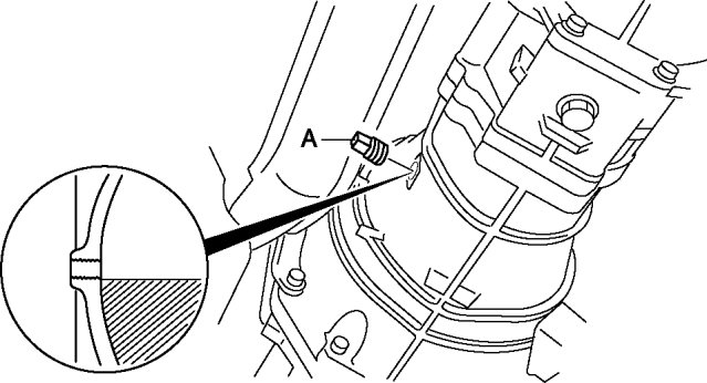 3. Verify that the transmission oil is at the brim of the check plug hole as shown.
