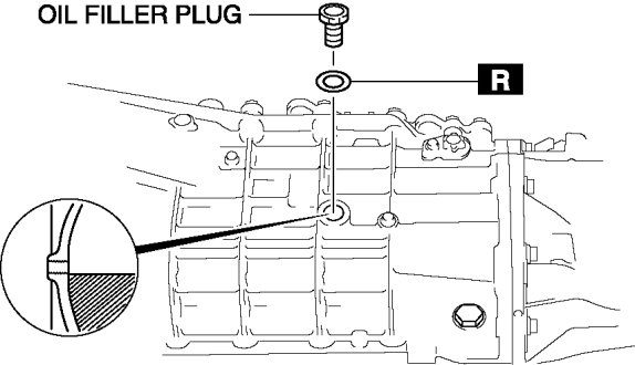3. Verify that the transmission oil is near the brim of the plug port.