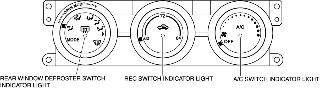 - If the system is normal, the A/C switch indicator light illuminates.