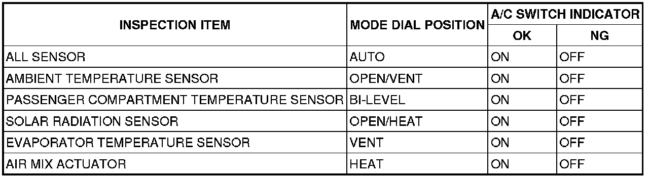 - If incandescent light is not shone on the solar radiation sensor, the climate control unit determines that there is a malfunction.