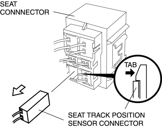 5. Detach the tab as shown in the figure and remove the connector from the seat connector.