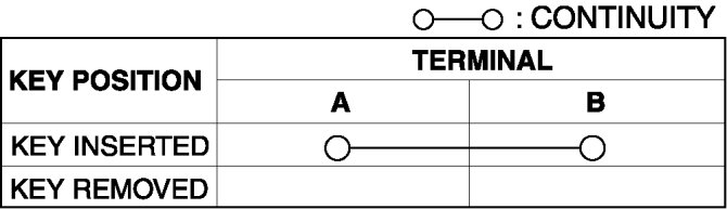 1. Verify that the continuity between the key reminder switch terminals is as indicated in the table.