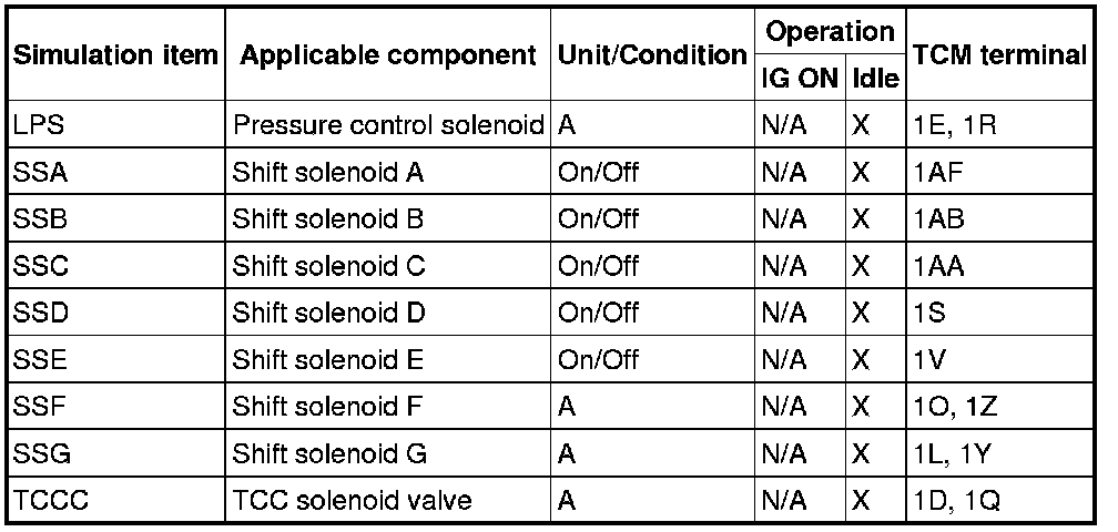 - If there is no operation sound from the solenoid after the simulation function inspection is performed, it is possible that there is an open or short circuit in the wiring harness, or solenoid, or sticking and operation malfunction.
