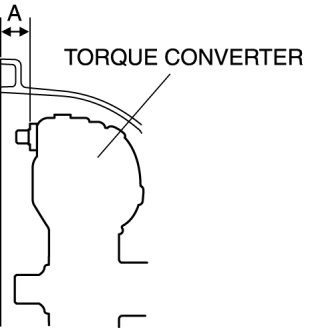 6. To ensure that the torque converter is installed accurately, measure distance A between the end of the torque converter and the end of the converter housing.