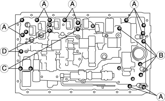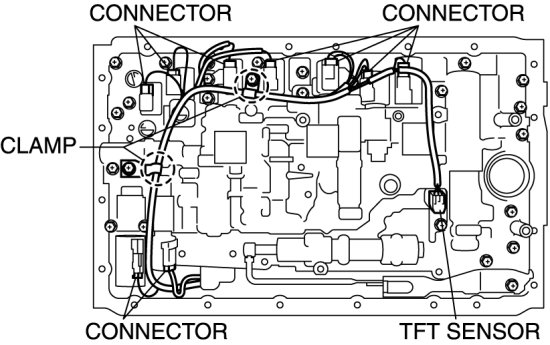 - When installing, be sure to put the wiring harness in the concave portion of the separator plate in the control valve body component as shown in the figure.