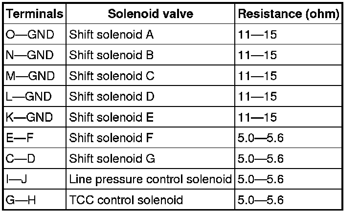 Solenoid valve resistance (ATF temperature: 20 °C {68 °F})