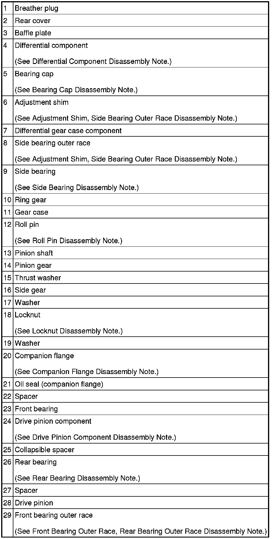 Differential Component Disassembly Note