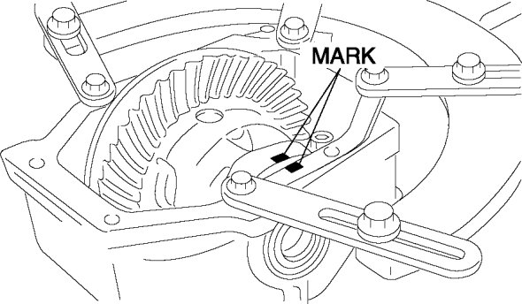 2. Put left and right identification marks on the removed adjustment shims and side bearing outer races.