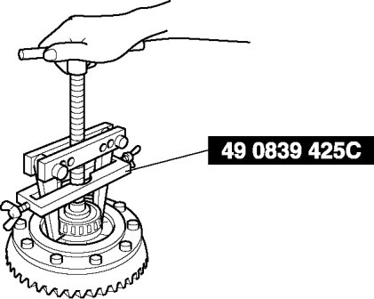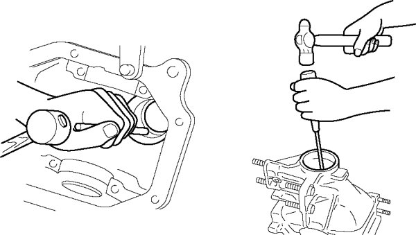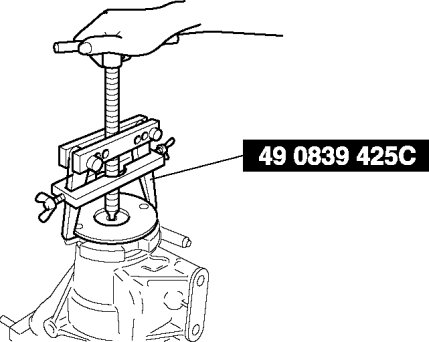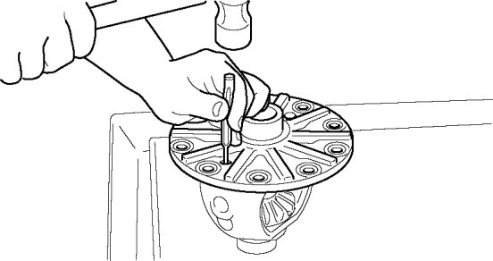 - The drive pinion could be damaged if it falls off. Support the drive pinion with your hand when removing the rear bearing.