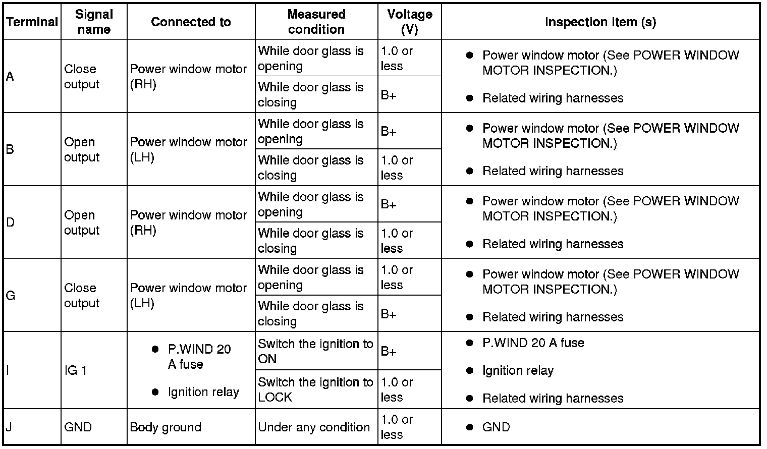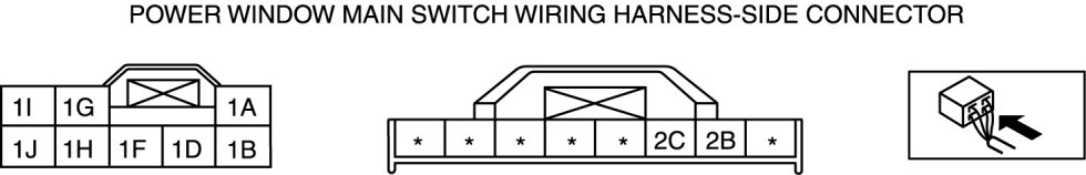 - If the system does not work normally even though the inspection items or related wiring harnesses do not have any malfunction, replace the power window main switch.