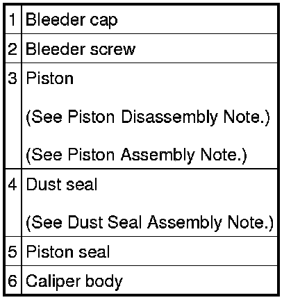 - When compressed air is blown into the caliper body, injury to a finger or other part from pinching could result from the piston springing up. When blowing in compressed air, do not place your fingers between the piston and caliper body when performing the work.