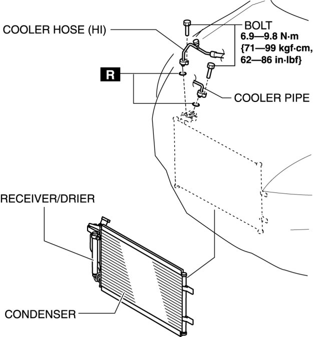 MZR 2.0, MZR 2.5, SKYACTIV-G 2.0 (4SD), SKYACTIV-G 2.0 (5HB, vehicles with receiver/drier on vehicle right)