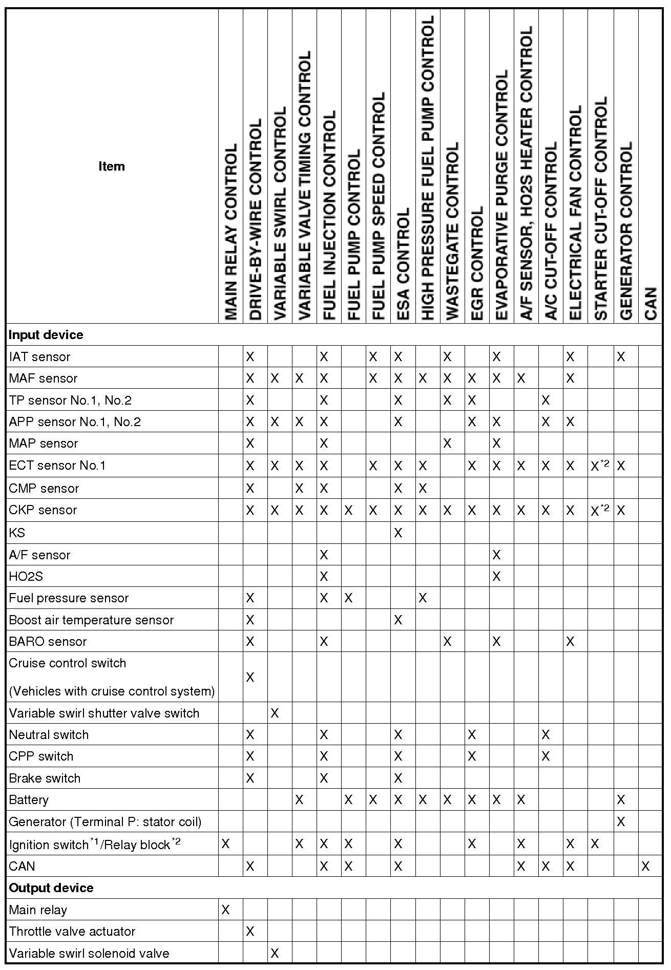 MONITORING SYSTEM AND CONTROL SYSTEM DEVICE RELATIONSHIP CHART [MZR 2.3 DISI Turbo]