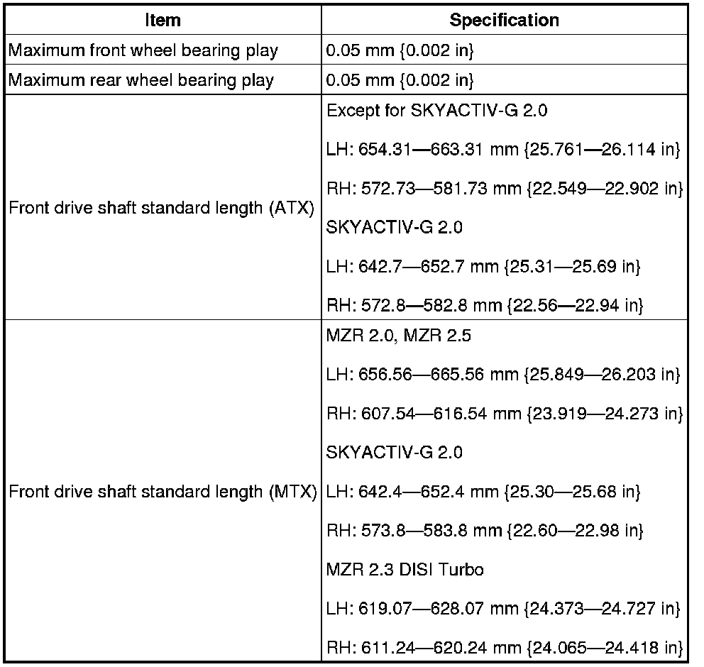 DRIVELINE/AXLE TECHNICAL DATA