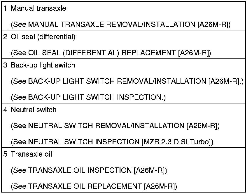 MANUAL TRANSAXLE LOCATION INDEX [A26M-R]