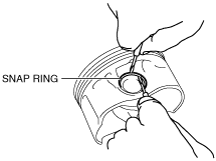 1. Before removing the snap ring, verify that the large end of connecting rod drops under its own weight with no resistance. (See PISTON AND CONNECTING ROD INSPECTION.)