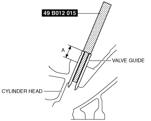 2. Tap the valve guide from the camshaft side using the SST so that the projection height (dimension A) is within the specification.