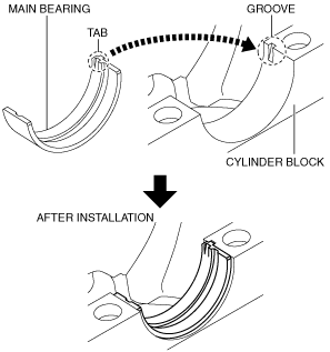 2. Align the positioning tab of the main bearing with the positioning groove of the lower and upper cylinder block, and assemble the bearings.