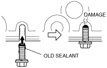 2. When reusing the lower cylinder block installation bolts, clean any old sealant from the bolts.