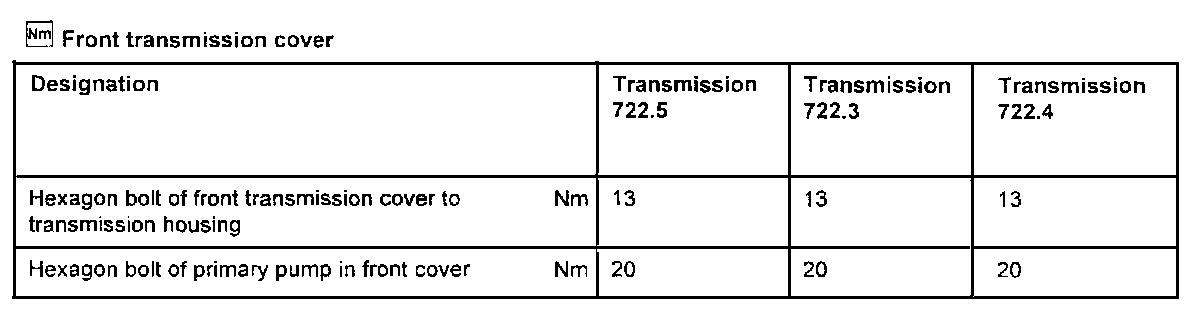 Transmission Type 722.3Torque Specifications Are For Clean & Lightly Lubricated Threads Only.