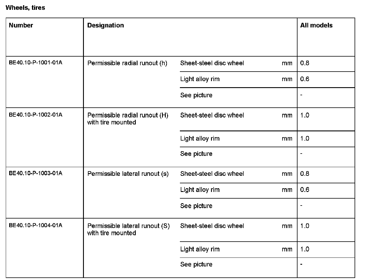 Wheels, Tires: