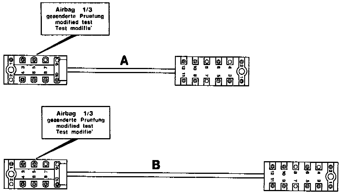 A notice on airbag 1/3 and on the modified test procedure is stamped on the top section of the test coupling for the airbag 10-pin plug connection (X29/9).