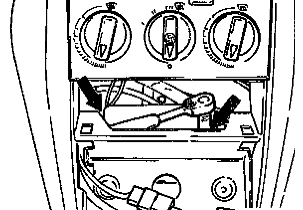 10. Press air distribution switch (right) toward the right and blower switch (left) upwards out of retaining plate.