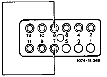 X26 Connection engine wiring harness (The black/white wire from connector X49/2 is connected to terminal 7)