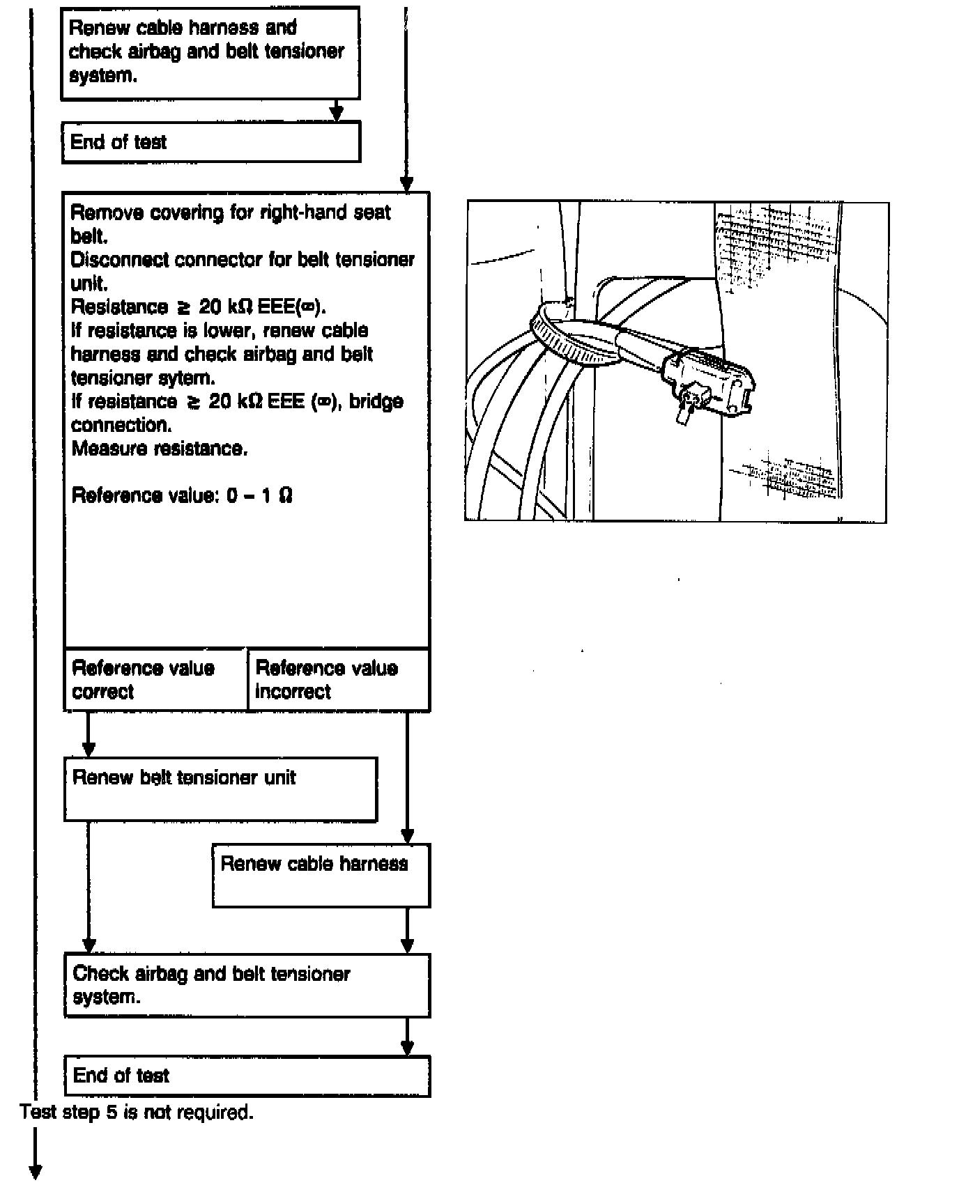 For belt tensioner testing on vehicles WITHOUT airbags, Testing and Inspection