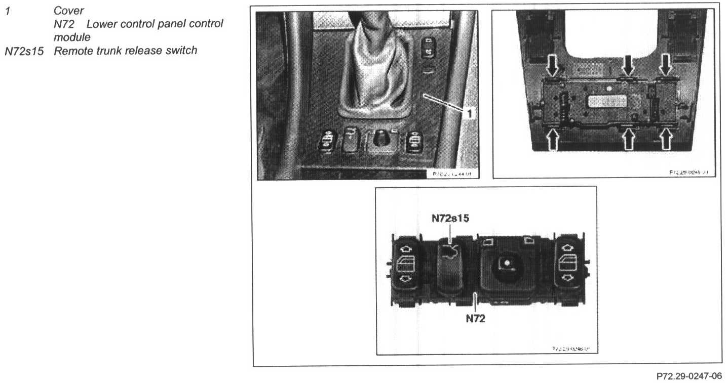 Unclip lower control panel control module (N72) (arrows)