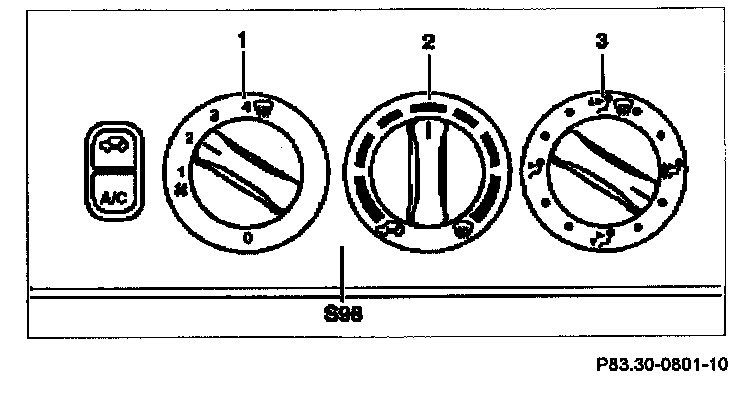 Blower switch (1): with a 0 position and 4 levels.