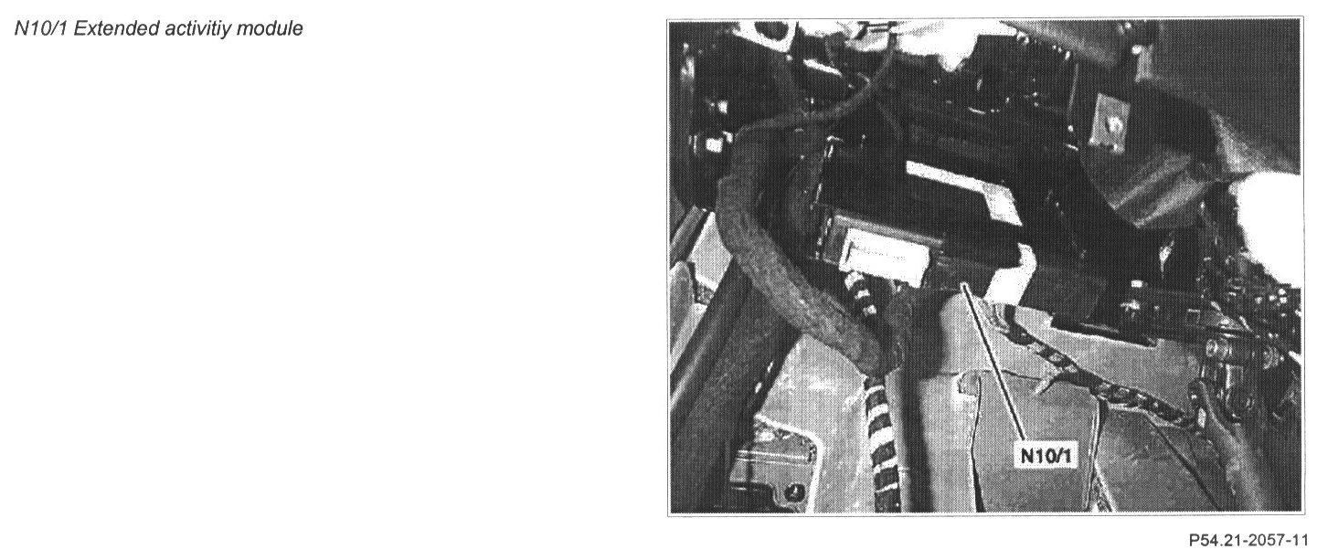 The extended activity module in combination with the new drive authorization system (DAS (N10/ 1-n1)) represents an extension of the All-Activity Module. In addition, the extended activity module acts as a diagnosis gateway for the transfer case, the all-activity module and as of 1.9.00 for the trip computer control module.