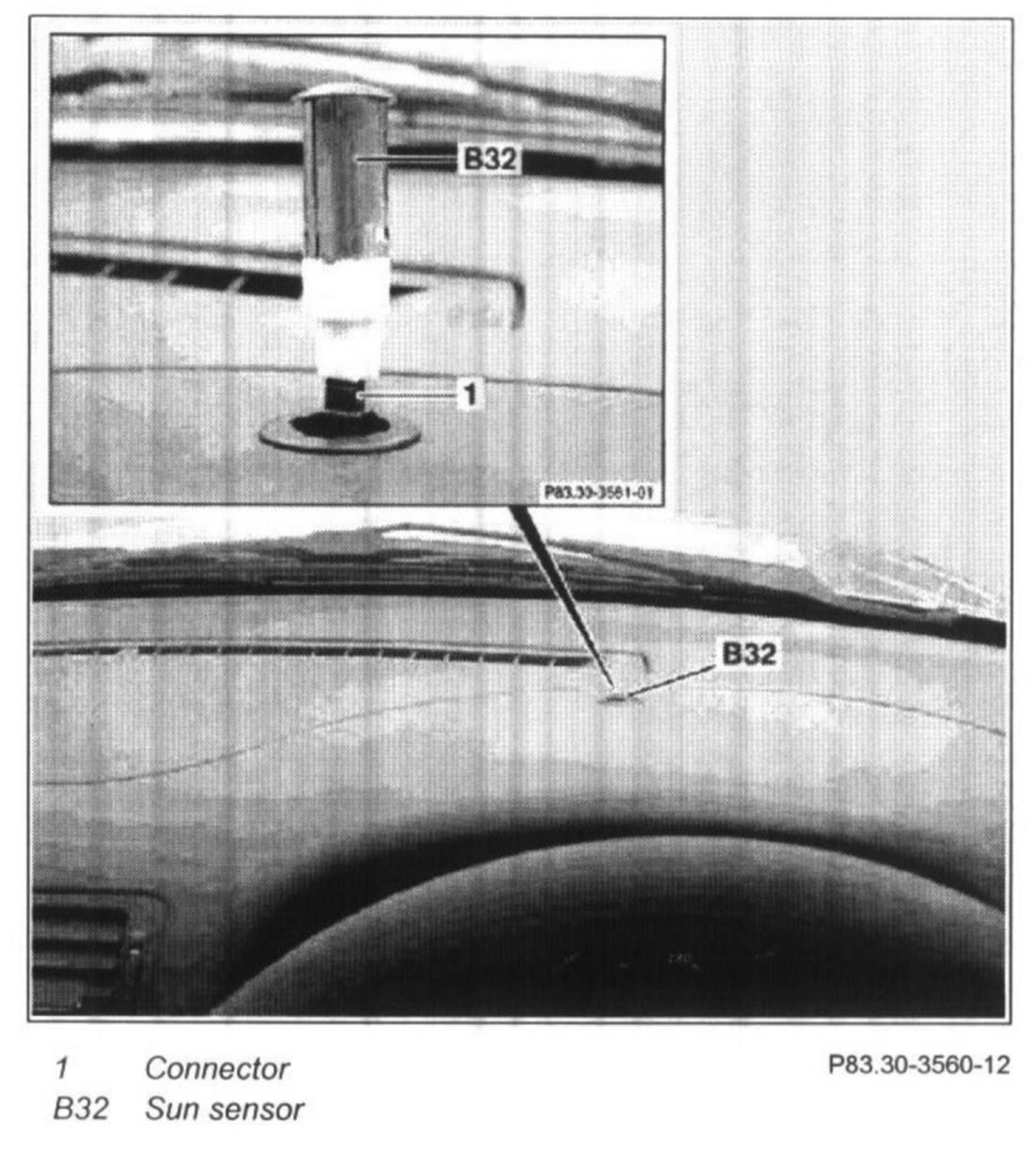 1 Pull sun sensor (B32) upwards out of the instrument panel