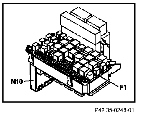 The All-Activity-Module (AAM) (N10) is located on the left side of the engine compartment. It is plugged into the fuse and relay module (F1) from underneath.