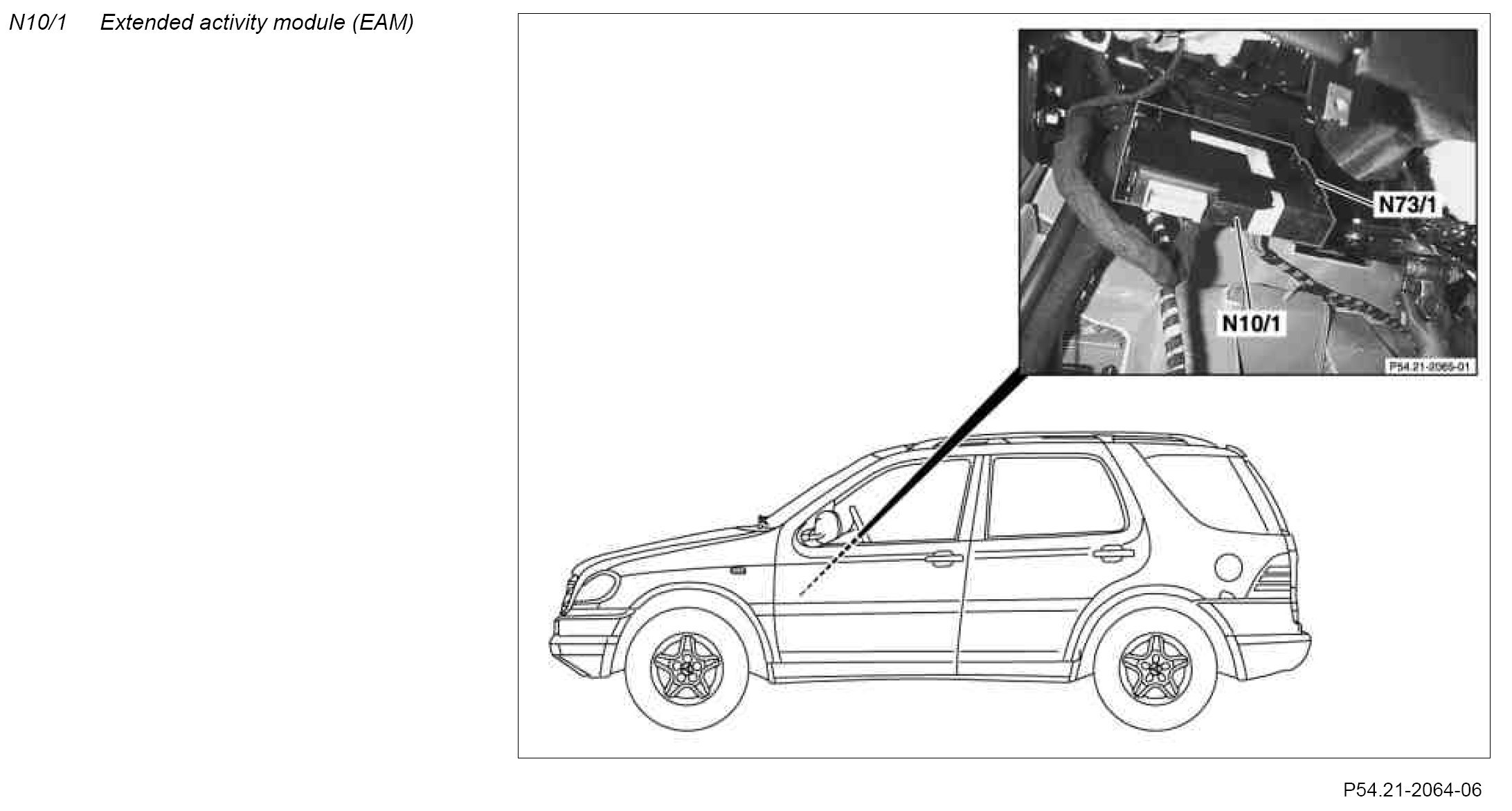 The extended activity module (EAM, N10/1) is located in the dashboard between the jacket tube and the A-pillar.