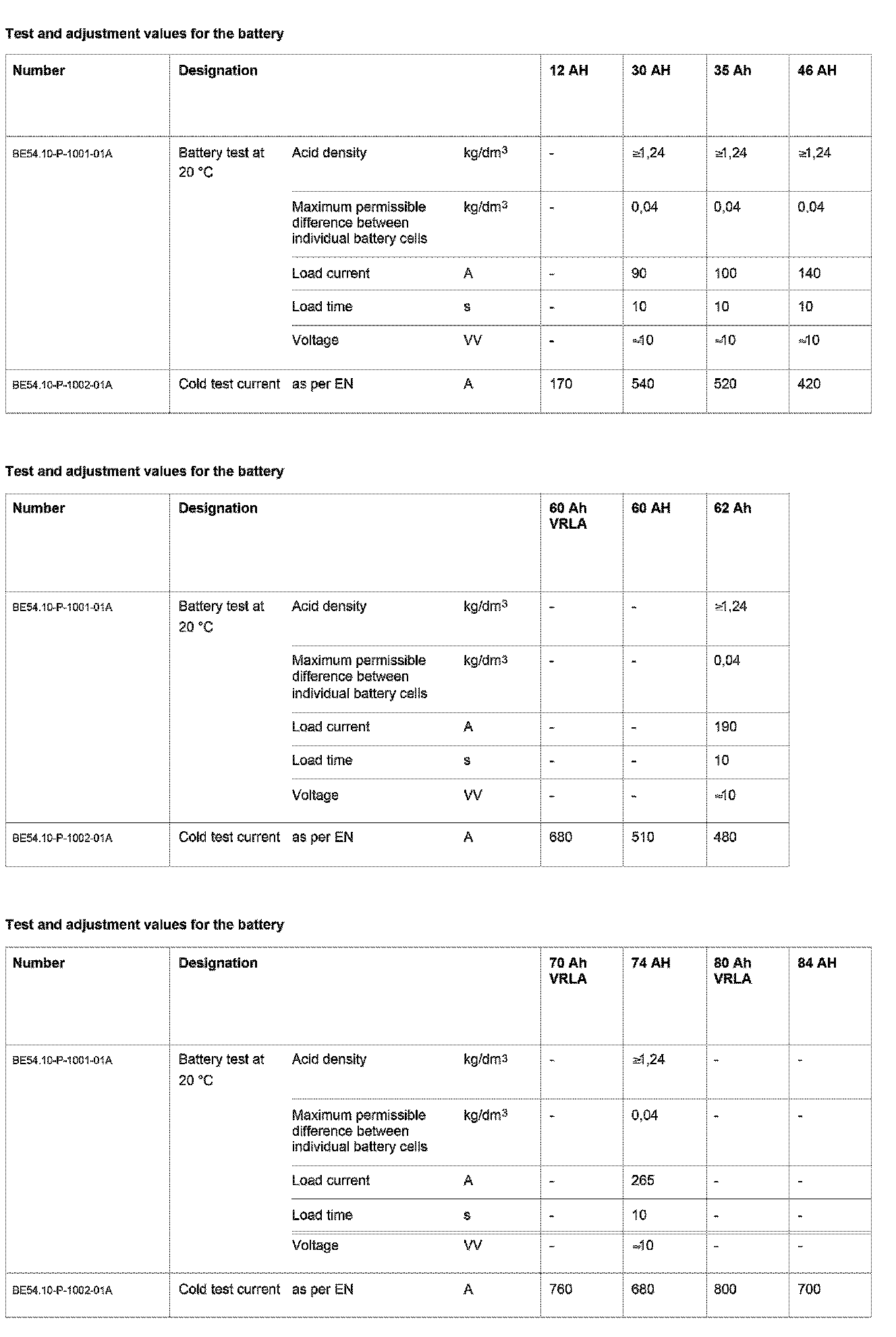 BE54.10-P-1000-01A Test Values For Battery, Voltage Supply