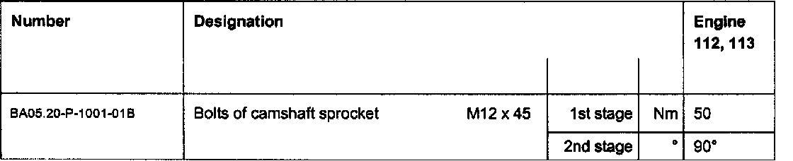 Camshaft, camshaft adjuster tightening specifications