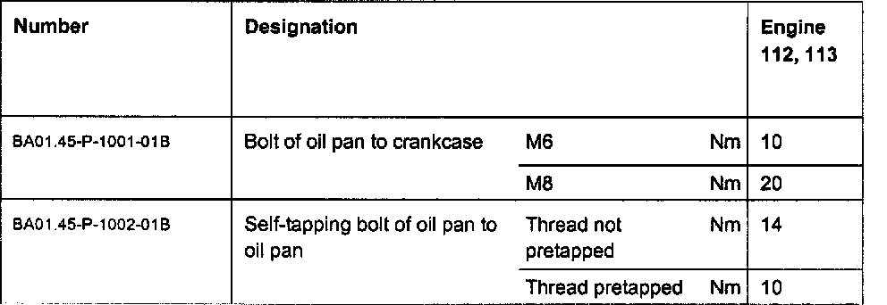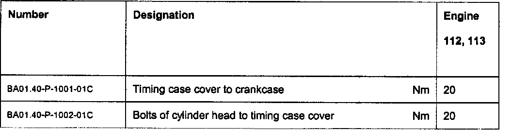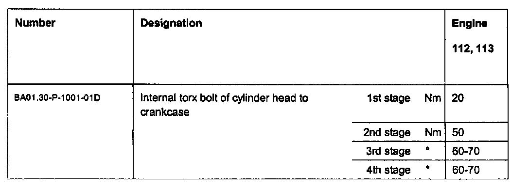Cylinder head to crankcase tightening specifications