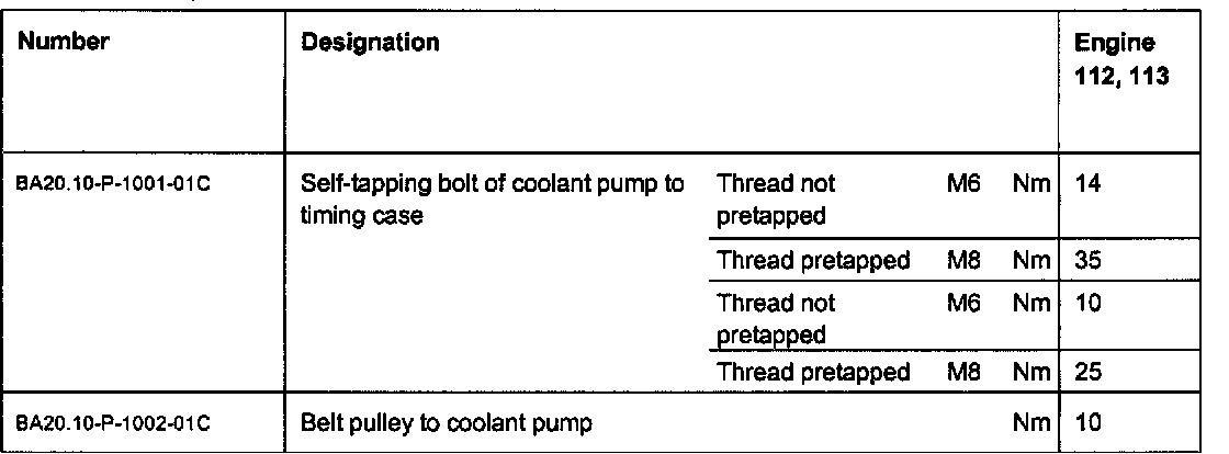 Coolant pump, coolant thermostat, tightening specifications