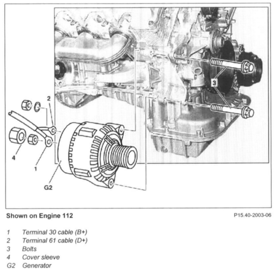- Nut on alternator terminal D+ - Engine 111 = 4 Nm