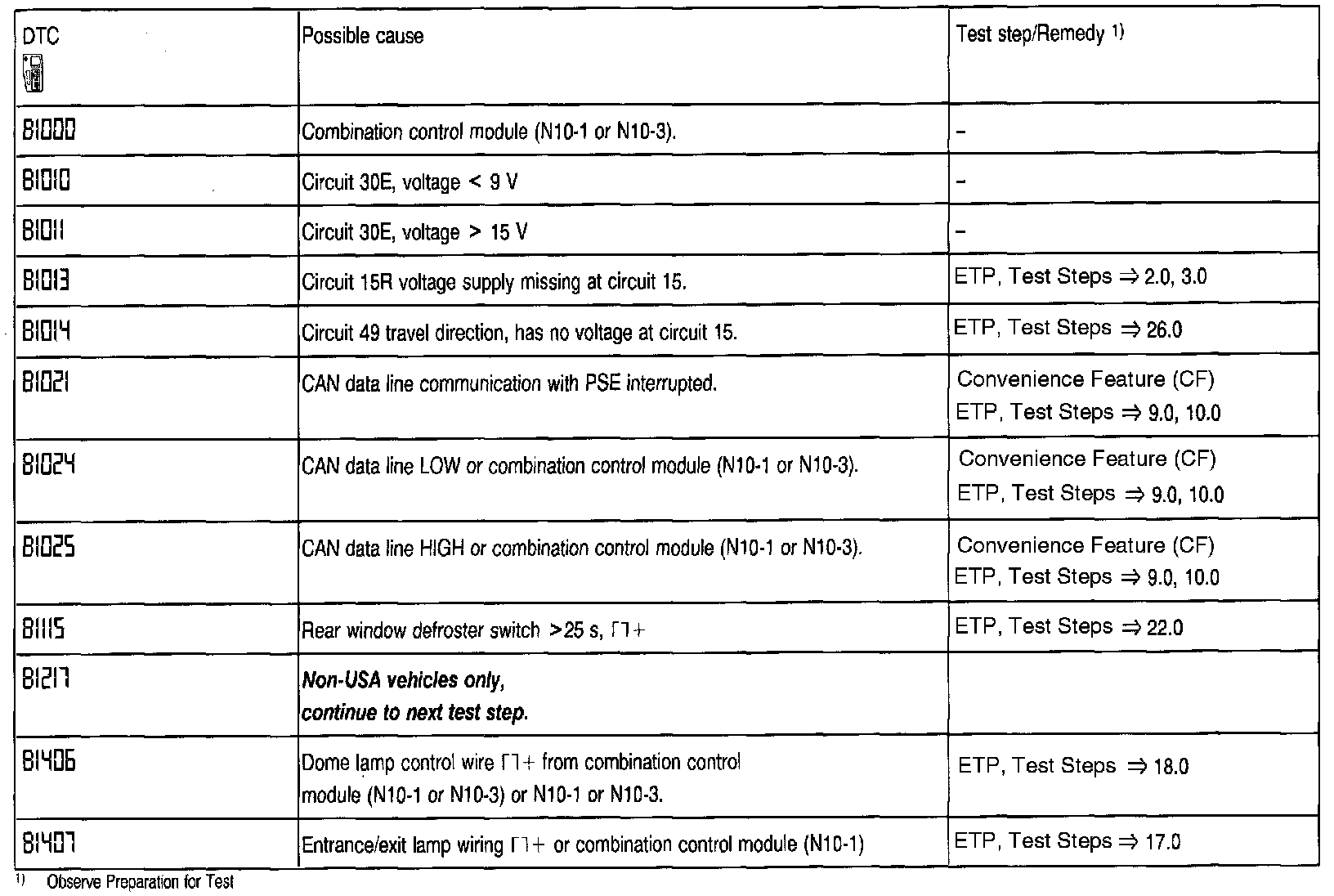 Erasing the Combination Control Module (N10-1) DTC memory, will also erase the DTC memory for the Convenience Feature (CF) and Mirror, steering column adjustment, heated mirrors (MSC).