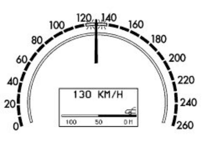 If the Distronic is activated, for example, at 130 km/h, only one or two segments in the area of the stored speed of