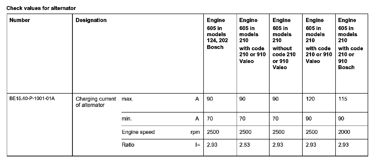 BE15.40-P-1000-01A Check values for alternatorModification notes: